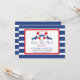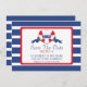 Lägg märke till att bröllop dejtar familj och vänner med vår moderna roligt och och spara datumet bröllop meddelande. Vår förbluffande och snyggt spara datum meddelande har en vacker röd och vit hjärtboj av rand med en marin blå banderoll som är inställd på en contemporary bred blå och vit rand. Vänd datumet för att spara det till en matchande rand-bakgrund. Perfekt spara datum meddelande för ett strandbröllop, sommarhavets bröllop eller destinationsbröllopet.