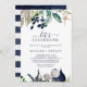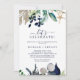 Denna moderna mardrömsfirande inbjudan är perfekt för en strandnära förlovningsfest, bröllop efter party, pension, studenten eller lycklig. Den botaniska designen har vackra grönt löv med marinblommor och guld-stjärnfiskaccenter, ge det som en biskopsvibe.