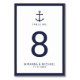 Modern Nautisk marinblå ankare Bröllop Bordsnummer