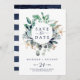 Att rädda datumkortet är perfekt för en kryssning eller ett badbröllop. Den botaniska designen har vackra grönt löv med marinblommor och guld-stjärnfiskaccenter, ge det som en biskopsvibe.