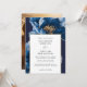 Den här bröllopsinbjudan till marinblått och guld blommigt kan vara personlig med din information i modern typografi och ett speciellt foto på motsatt sida. Designad av Thisisnotme©