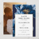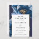 Modern Navy Blue and Guld Blommigt Photo Bröllop Spara Datumet