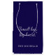 A stylish navy blue and white custom-designed gift bag perfect for parties, events, celebrations, and elegant gift presentations.