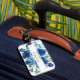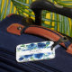 Vattentärsfärgad Modern Blommigt Navy Blue on White Script Luggage Tag med anpassat handskript med elegant som skrivits med typografi namnteckning för namn. Anpassa med ditt namn och med ditt yrke eller med ditt företag namn.