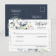 Detta vykort för OSA av händelsemeddelanden i bröllop med QR-kod och returadress har en elegant av modernt minimalistiskt stil med vattenfärgsarrangemang för grönt lövträ och vackra kalligrafi och rent och serif-typografi typsnitt på marin blå bakgrund. Den enkla och rena utformningen av detta kort för svarshölje i bröllop OSA fungerar bra med alla bröllop teman och definitivt ett underbart tillägg till bröllop. Anpassa bara parets namn, datum, bröllop webbplats, QR-kod och annan information i några enkla steg och anpassa det till ge. Observera: elegantens vackra typografiordalydelse: fraser av "vänligt svara" och "vänligt leverera till" tillsammans med vattenfärgen grön foliage eucalyptus lövs Arrangements och annan grafisk grafik inslag som linjer och rektangulär ruta kan inte redigeras, ändras, flyttat eller tas bort. De är fixerade.