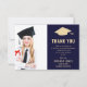 Modern Navy Blue Guld Photo Studenten Tack Kort