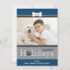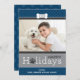 Skicka ett leende den här julhelgen med en roligt med ett fotohälsningskort med hund, komplett med hund ben och dekordekordeskonstruktionstecken. Modern design med en polka-punktsmönstrad bakgrund och marinblått och grått färg.