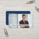 Clean modern navy blue photo profile design business card featuring a scannable QR code for quick and easy contact sharing. Includes space for photo, name, title, and key details. A sleek, minimalist layout ideal for professionals, entrepreneurs, and creatives who want a polished, modern networking look.