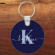 Den här enkla, blåa nyckelkedjan med namn i det första trendiget i ett skrivteckensnitt i vitt och det första tecknet i ett modernt teckensnitt i ljusblått är perfekt för nycklarna. Det är snyggt och trendig och ändå väldigt klassiskt.