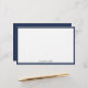 Mörk Navy Blue and White Simple Modern Classic Minimalist Note Card Utformningen har ditt namn vid grund, framtaget av en chic marin blå gräns.
