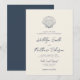 Modern Navy Blue Snäcka Beach Destinationsbröllop Inbjudningar