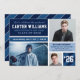 Det moderna studenten-annonskortet och partiinbjudningarna innehåller tre (3) foton av student i ett modernt färg-blockkollage med rand-design. Tungblått, safir, pulverblått, molnblått och vitt färg.
