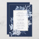 Modern Navy Blue Watercolor Blommigt Bröllop Inbjudningar