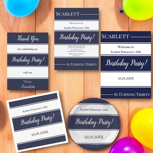 Modern Chic Navy Blue White Stripes BirthdayDesignad av Mohamed Sherif