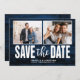 Modern Navy Blue Wood 2 Photo Save Date Spara Datumet