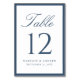 This navy table number card brings a classic look to your reception tables with a navy border that frames the design in a timeless way. “Table” is displayed in elegant calligraphy at the top, with a large serif table number centered below for easy readability. The couple’s names and wedding date are displayed beneath, adding a personalized touch that pairs beautifully with formal, traditional, and coastal-inspired weddings. This card measures 3.5"x5". Edit each table number individually and add them to your cart to ensure a smooth ordering process.