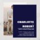 Bjud in dina vänner och nära och kära med denna stilrena minimalistiska marinblå med vit text bröllopsinbjudan med ett foto av det nygifta paret på baksidan för att dela din glädje över ditt senaste äktenskap. För bästa resultat anpassa din valda bild för baksidan av inbjudan till en 5 x 7 proportion.