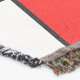 Kastfilten har ett modernt mönster i mitten av århundradet med ett nedfläckad-glas som ser ut med svart linjer och cirklar fyllda med primärt och sekundärt färg.