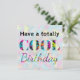 Detta moderna födelsedags kort har en livfull flerfärgad design med meddelandet 'Ha en supercool födelsedag'. De moderna och ljusa färgerna har en neonlook. Perfekt för de som älskar modig modern stil.