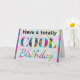 Detta moderna födelsedagskort har en livfull flerfärgad design med meddelandet 'Ha en supercool födelsedag'. De moderna och ljusa färgerna har en neonlook. Perfekt för de som älskar modig modern stil.