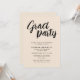 Den här inbjudan utstrålar sofistikering och enkelhet med en modern minimal estetik. Paletten färg är helt svart och neutralt, vilket ger ett slimmat, tidlöst utseende. Ord "Grad Party" tar mittsteget, skrivet i ett penselskript som fångar öga och som lägger till en lekfull chic till layouten. Nedan visningar rent, sans-serif-typsnitt på ett strukturerat och organiserat sätt evenemangsdetaljerna.