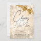 MODERN New Years Eve Gold Champagne Bokeh Gold Bow Inbjudningar