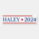 Visar "Haley 2024" i blå text med röd stjärna däremellan. Pro Nikki Haley-design. För anhängare till Nikki Haley, f.d. guvernör för South Carolina och FN-ambassadör, som vill bli vald till president för Stater i valet 2024. Kampanj är ett redskap för republikaner och folk tittar för något annat.