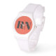 Modern Nurse RN Orange Terracotta Anpassningsbar Watch har ett vitt band och en mörk som är vänd mot "RN" i grått brev ・ Klicka på Anpassa om du vill byta till ditt yrke (t.ex. NP, RN, LPN, CNA)