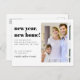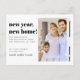 Ett modernt vykort för att meddela din senaste flytt till familj och vänner. Den enkla designen visar ditt foto med "nytt år nytt hem" i fet typografi. Personliggör med din adress och namn.