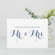 Roligt och nyckfullt platt bröllopskort med modern marinblå kalligrafi. Liknande artiklar finns tillgängliga. Lycka till för det nya paret Hr. & Fru.