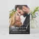 Jul modern nygift och glad fullständig bröllopsfotokort. På baksidan av kortet är mörkgrått med ett ljust grått prickmönster.