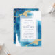 Modern Ocean Inspired Blue Watercolor Gold Splash Inbjudningar