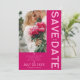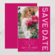 Wow your älskade med detta slående Magenta Spara Datum kort- en perfekt blandning av djärvhet och modern elegans designad för att sätta tonen för din speciella dag. Skapat med en livfull magenta nyans som lovar att sticka ut, detta spara datum kort kombinerar modern design med en touch av tidlös romantik.