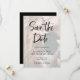 Det här ultratunna fotot med bröllop spara datum-trender har ett fullt-utfallsfoto, som rammas under övertäckningen, med en blandning av svart, handskriven skripttypografi av trendiget och slab serif-text över det. En elegant och ett enkelt meddelande som kommer att framträda så fort gästerna öppnar kuvertet.