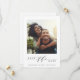 Ett enkelt och modernt bröllop-foto sparar datumkortet med anpassningsbar på baksidan. Om du vill ha en mer avancerad anpassning av den här designen klickar du på länken Anpassa ytterligare för att ändra teckensnitt, storlekt, färg osv.