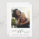 Ett enkelt och modernt bröllop-foto sparar datumkortet med anpassningsbar på baksidan. Om du vill ha en mer avancerad anpassning av den här designen klickar du på länken Anpassa ytterligare för att ändra teckensnitt, storlekt, färg osv.