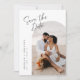Med det här moderna och enkla Spara datumkortet får du en bra visning till dina gäster med information och foton. Lägg till ett foto i visningen och även på baksidan, ge 2 fotoblanksteg. Du kan sedan anpassa namn, datum och plats.