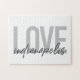 Modern, enkel, minimal typografisk utformning av ett ordspråk som heter "Kärlek Indianapolis" i tonerna av grått färg. Coola, stads-, trendig- och lekfull grafisk vektorkonst med handskriven typografi.