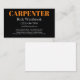 Affärskortet Carpenter-mall i en djärv, modern design som visningar namn i ditt yrke och en lista över tjänster som du kan anpassa onlinen. Presenterad med utskriften fullt färg ingår. Designad för en licensierad Carpenter eller entreprenör.
