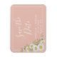 Söt bröllop-design har vattenfärgsvit daisy i hörnet på rosa med vita textblock i modernt typsnitt