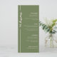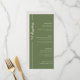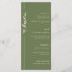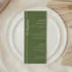 Ett modernt och elegant oliv grönt menykort för bröllop. Anpassa med menyalternativen bröllop och namn och bröllop vid grund på kortet.