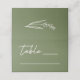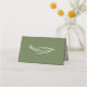 Ett enkelt och modernt oliv grönt bröllop-platskort, med skript på framsidan och en blommigt inslag på baksidan.