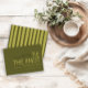 Meddela din speciella dag med den här snyggten och contemporaryn Spara datumkortet med en djärv oliv grönt bakgrund och en lekfull, handskriven typografi. Baksidan visar en roligt grönt rand mönster för en modern och konstnärlig beröring. Perfekt för kreativet par som vill ha ett unikt och minimalt uttalande från bröllop. Anpassa enkelt med namn och bröllop-datumet. ・ Modern minimal design ・ Oliv grönt + limmad bakåt ・ Handskriven typografi ・ Helt redigerbar - personlig på några minuter ・ Perfekt för avslappnad, kreativ eller utomhusbruk i bröllop