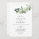 Denna moderna inbjudan till bröllopet för oliver-avslappnaden i gren är perfekt för en boho bröllop. Den roliga men ändå elegant-konstruktionen har en ren löv av botanisk grönt och svarta oliver på ett litet gren med en klassisk mediterrana känsla.