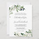 Denna moderna inbjudan till traditionellt bröllop i gren är perfekt för en boho bröllop. Den roliga men ändå elegant-konstruktionen har en ren löv av botanisk grönt och svarta oliver på ett litet gren med en klassisk mediterrana känsla.