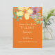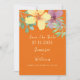 Modern, ljusstark elegant orange bröllop spara datum-inbjudan med vattenfärgsgrön och gigantisk gult och lila blommor.