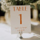 Modern and elegant whimsical orange and cream wedding table numbers. As you see it features a cream background with bold orange script that matched the whole suite.