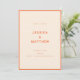 Denna moderna orange "Save the Date"-design har fet minimalistisk typografi infattad av en ren ram för ett tryggt och modernt utseende. Den varma korallorange tonen tillför energi medan den enkla layouten håller fokus på era namn och datum. Perfekt för par som älskar ren design, stark färg och en fräsch redaktionell känsla. Anpassa med era bröllopsdetaljer för att skapa ett slående första intryck som känns både modernt och tidlöst.