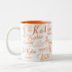 Lägg till ditt eget namn i mallen om du vill skapa en sömlös orange och vit mönster-typografi. En kollage namn med olika stilar för skriptteckensnitt på en trevlig orange-mugg