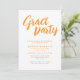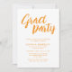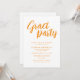 Den här inbjudan utstrålar sofistikering och enkelhet med en modern minimal estetik. Paletten färg är orange och vit och ser till att det ser elegant ut som det ser ut i tid. Ord "Grad Party" tar mittsteget, skrivet i ett penselskript som fångar öga och som lägger till en lekfull chic till layouten. Nedan visningar rent, sans-serif-typsnitt på ett strukturerat och organiserat sätt evenemangsdetaljerna.